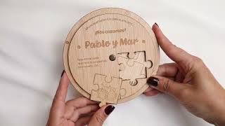La invitación de boda Puzzle es el reflejo de una historia donde todas las piezas han encontrado su lugar. Lejos de ser un simple anuncio en papel, esta pieza grabada en madera natural propone una experiencia diferente, donde vuestros invitados descubren los detalles del gran día a través del movimiento y el tacto. Es la elección ideal para quienes buscan un detalle con significado y un acabado que se sale de lo convencional.