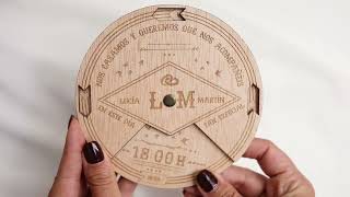 🪶 UNA INVITACIÓN DE BODA RÚSTICA DE MADERA CON DISEÑO GIRATORIO